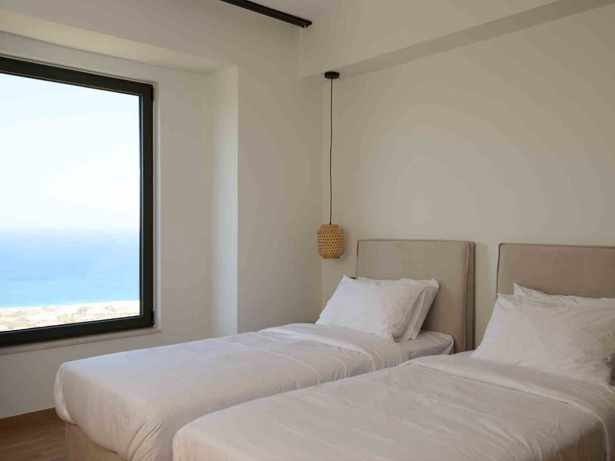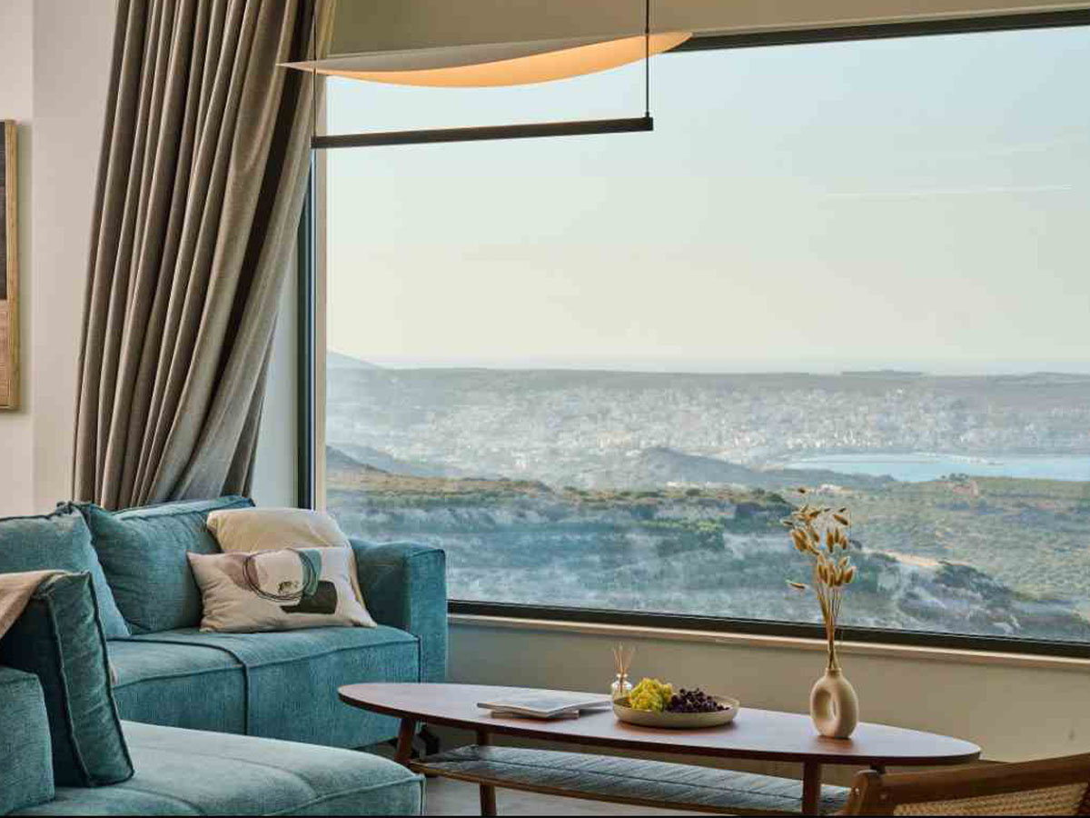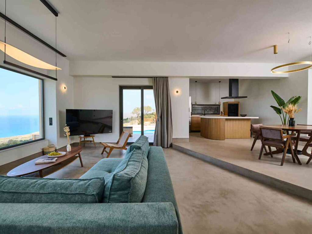 A stunning 190 sq.m. two-level residence, ideal for families or large groups. It features two bedrooms with double beds, a sofa bed, a spacious living area, modern kitchen and a pool with panoramic views of Sitia Bay.